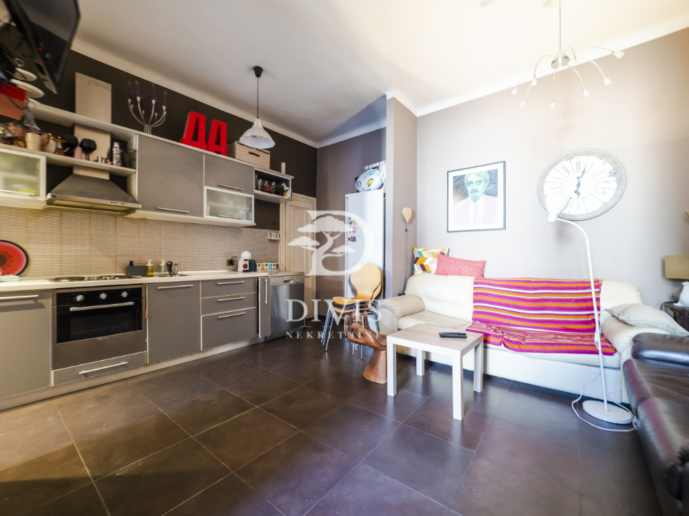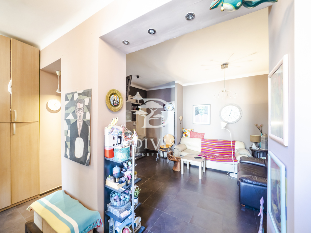 Raspored prostorija je idealan za porodični život — ulazni hodnik vodi u prostranu dnevnu sobu, tri svetle i komforne spavaće sobe, dva kupatila i terasu sa prijatnim pogledom. Visoki plafoni i veliki prozori obezbeđuju obilje dnevne svetlosti i ističu autentičan salonski karakter prostora. Uz stan ide i pripadajuća podrumska prostorija.
