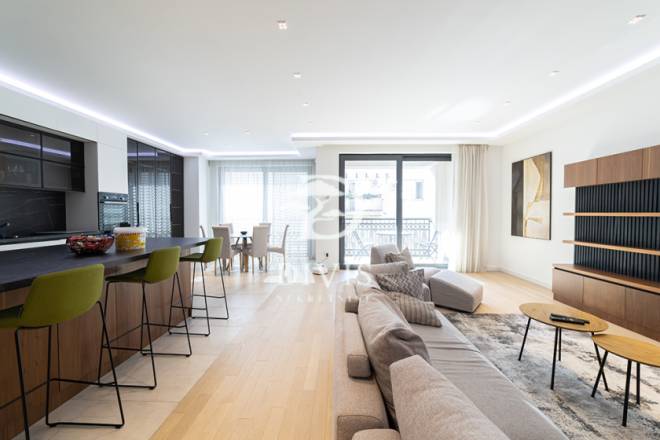 Grejanje i hlađenje regulisano je zidnim panelnim sistemom, a ceo stan funkcioniše preko smart-home sistema. U cenu zakupa uračunato je i garažno mesto u podzemnoj garaži.