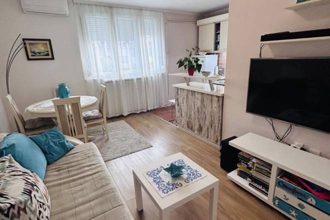Stan je moderno i pažljivo uređen, funkcionalnog rasporeda i gleda na mirno unutrašnje dvorište. Potpuno je opremljen svim potrebnim nameštajem i belom tehnikom, tako da pruža sve što je potrebno za udoban i prijatan život. Prostor je maksimalno iskorišćen, pa i pored manje kvadrature deluje praktično i komforno, idealan za pojedinca ili par.
