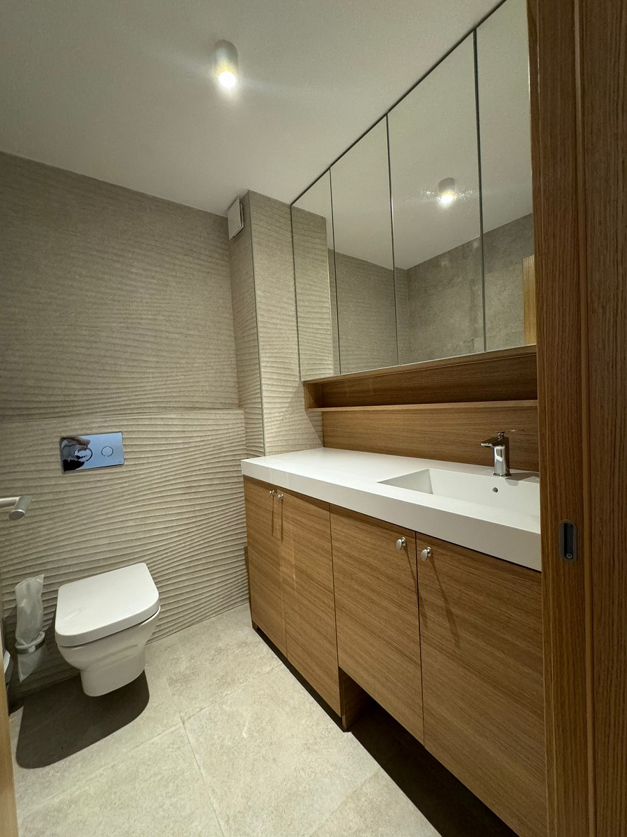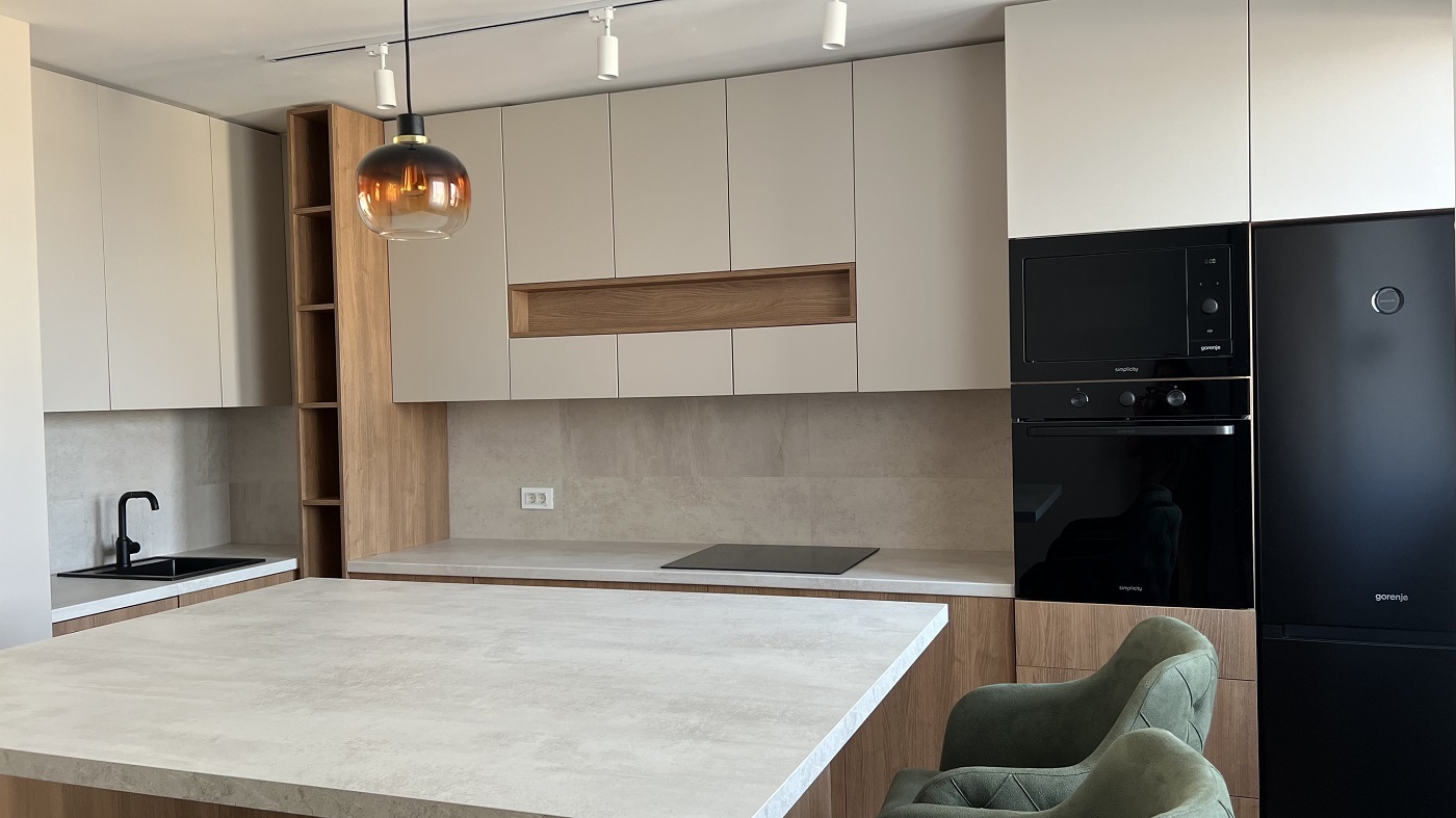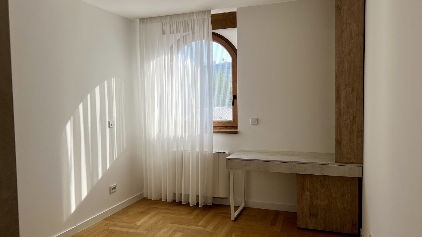 Ovaj prostran, dvostrano orijentisan stan, sastoji se od dve udobne spavaće sobe, od kojih je za jednu ostavljena mogućnost da se opremi po potrebi budućeg zakupca, zatim moderno uređenog dnevnog boravka sa francuskim balkonom, funkcionalne kuhinje sa kompletno novom aparaturom, uključujući i kuhinjsko ostrvo koje se savršeno uklapa uz ostatak enterijera u stanu. Stan poseduje kupatilo sa tuš kabinom kao i toalet.