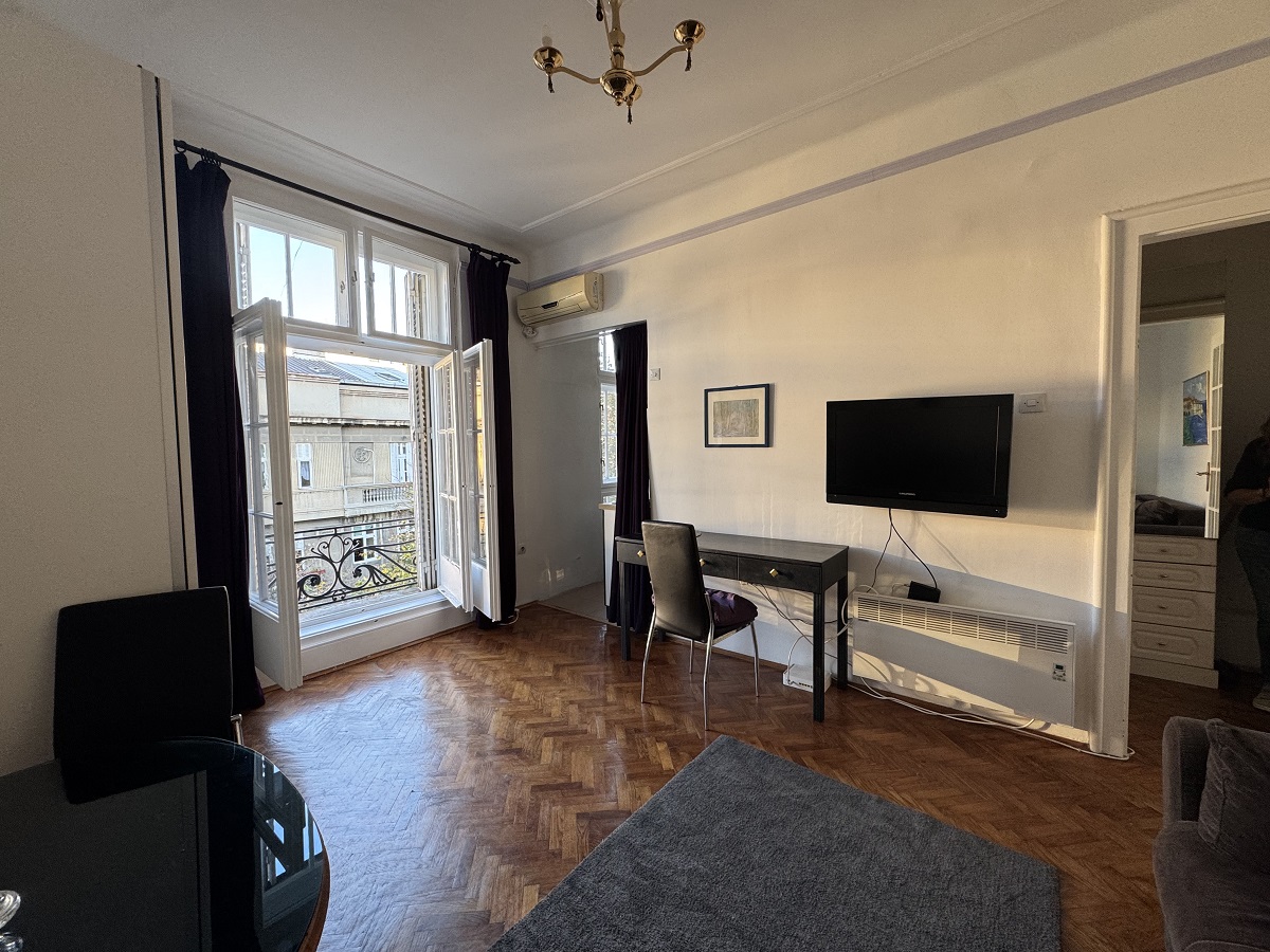 Stan je izuzetno osvetljen tokom celog dana zahvaljujući velikim prozorima i francuskom balkonu s pogledom na ulicu. Sastoji se od ulaznog hodnika, prostranog dnevnog boravka, odvojene i kompletno opremljene kuhinje i modernog kupatila.