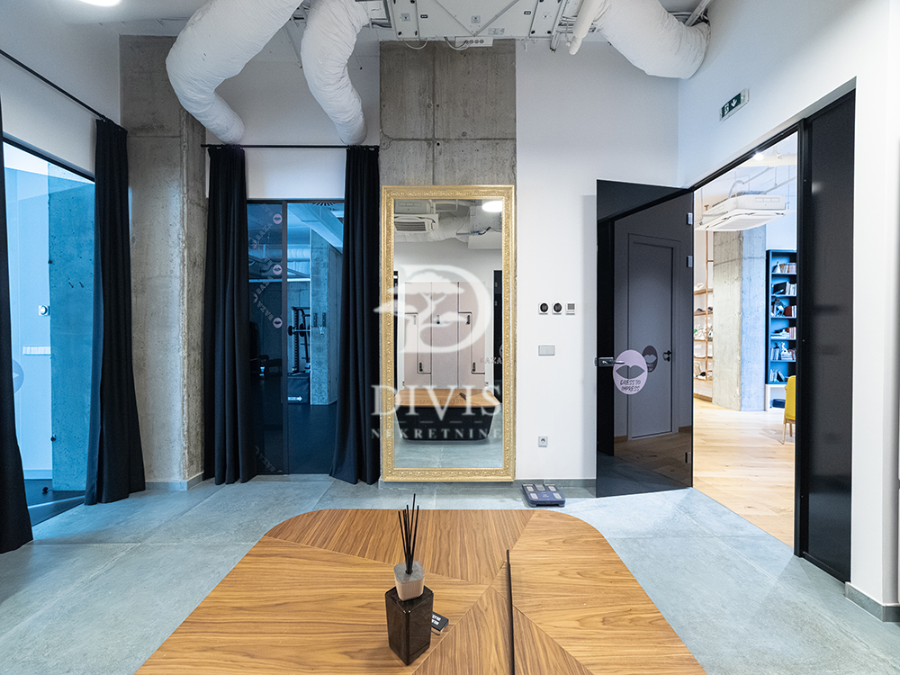 Poslovni prostor je trenutno uređen i opremljen kao luksuzan fitness i wellness centar sa kompletnim garderobama, tuševima i tehničkom infrastrukturom, što ga čini idealnim i za slične delatnosti (fitness studio, wellness, spa) ali i lako prilagodljivim za kancelarije, showroom ili druge uslužne poslove.