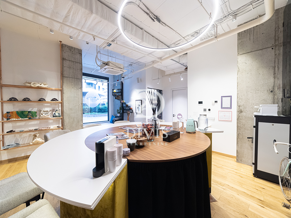 Prostor je dvostrano orjentisan, sa velikim staklenim površinama i sa mogućnošću podele na dva zasebna lokala (157m² i 132m²) pošto poseduje dva ulaza i dva brojila.