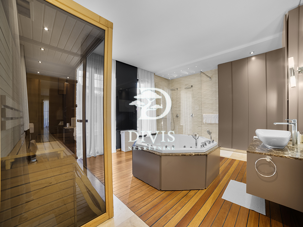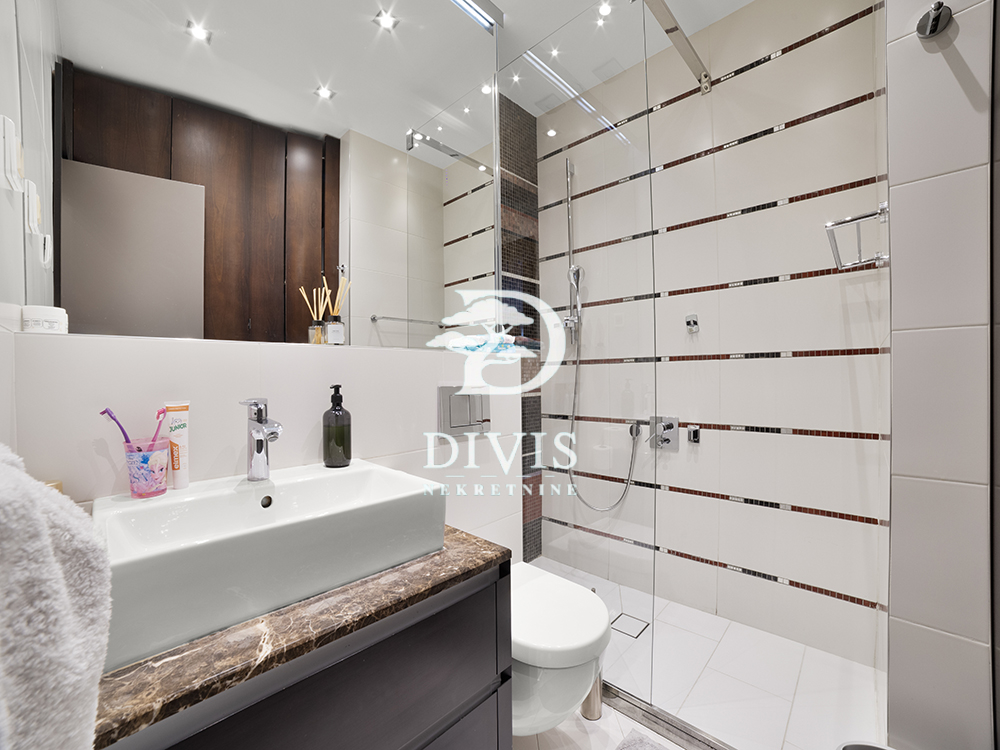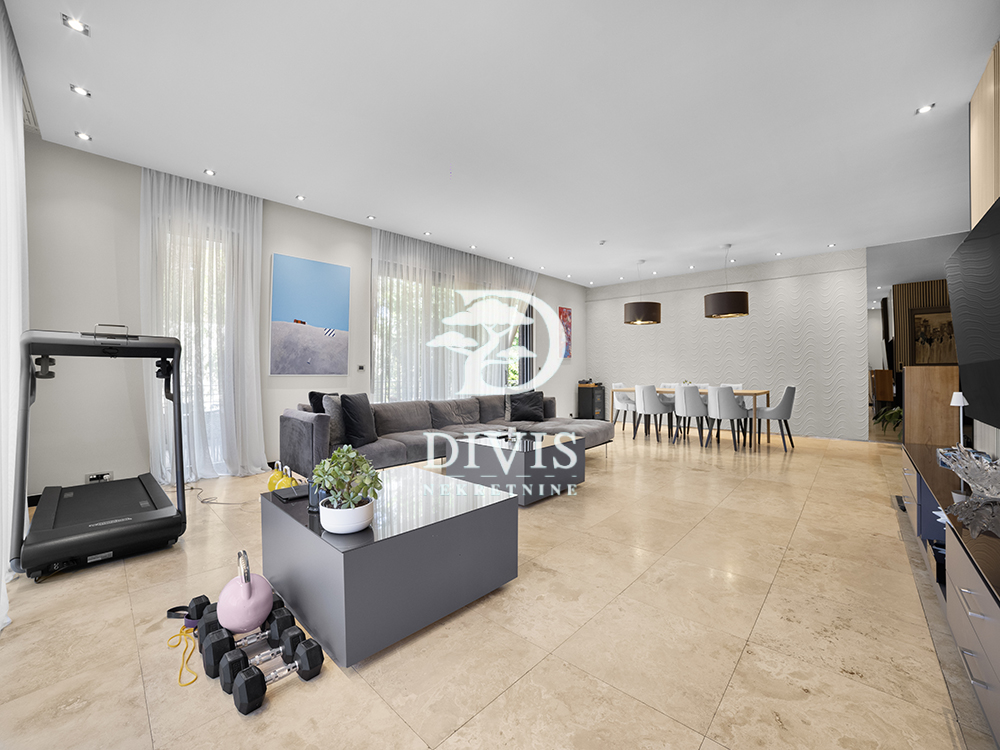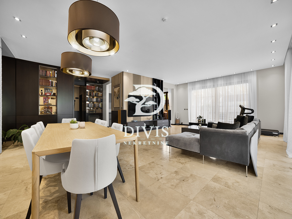 Ukupna površina od oko 360 m² organizovana je tako da 180 m² čini unutrašnji stambeni prostor, dok preostalih 180 m² zauzima terasa koja u kontinuitetu okružuje stan. Terasa je pažljivo uređena kombinacijom dekinga, keramike i zelenila, čineći prirodan produžetak enterijera. Na to se nadovezuje i dodatnih oko 100 m² privatnog dvorišta, koje ovom stanu daje retko viđen osećaj prostora-mesto koje može funkcionisati kao zona za boravak na otvorenom, ali i kao potencijal za proširenje stambenog dela, u skladu sa potrebama budućeg vlasnika.