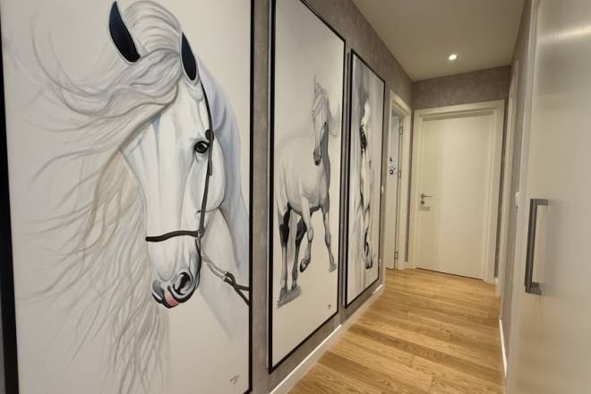 Stan se sastoji od ulaznog hodnika, prostranog dnevnog boravka sa izlazom na terasu, trpezarije i potpuno opremljene kuhinje, dve master spavaće sobe sa sopstvenim kupatilima, dečije spavaće sobe, odvojena soba pretvorene u garderober, dodatnog kupatila, gostinskog toaleta i vešernice.