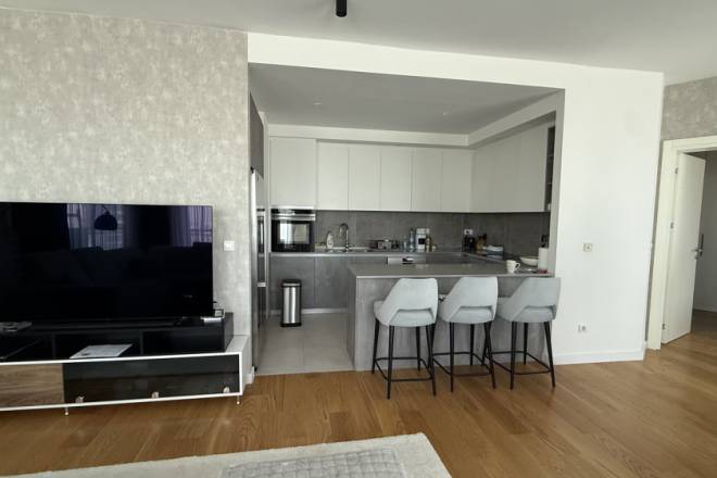 Izdajemo izuzetan, kompletno opremljen stan površine 144 m², smešten na 24. spratu prestižne zgrade BW Aqua u okviru naselja Beograd na vodi. Stan pruža spektakularan, otvoren pogled na reku Savu i Kulu Beograd. BW Aqua se nalazi uz obalu Save, neposredno pored Kule Beograd i šoping centra Galerija. U blizini su brojni parkovi, vrtići, buduća međunarodna škola, restorani i sve što je potrebno za savremen i urban život.