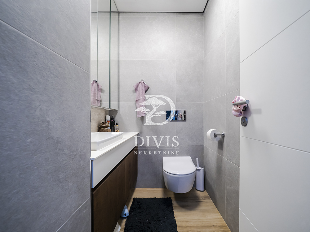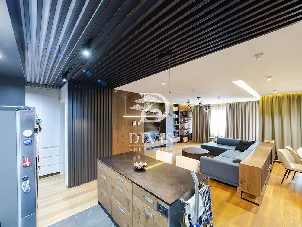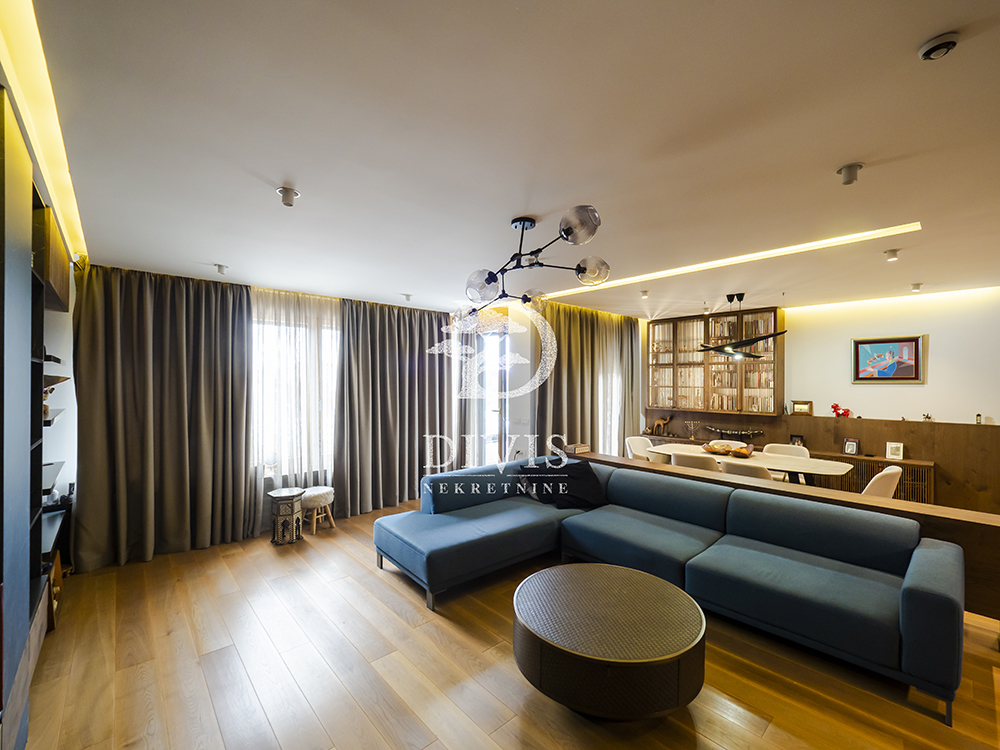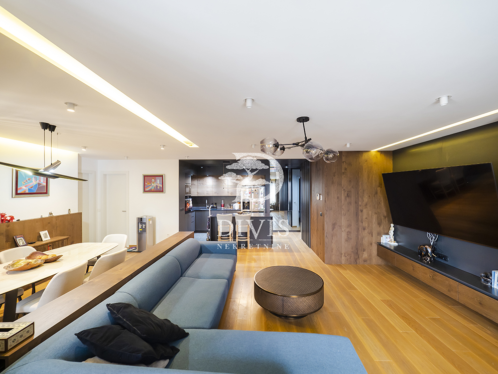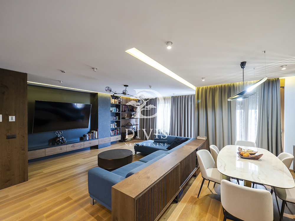 Stan je prostran, svetao i građen od najkvalitetnijih materijala: aluminijumsko-drvena stolarija sa električnim roletnama, Bosal sigurnosna vrata, granitna keramika, hrastov parket prve klase, Smart Home tehnologija, Fujitsu rashladni sistemi u svim prostorijama, centralno grejanje sa kalorimetrom po utrošku i Ariston pametni bojler.