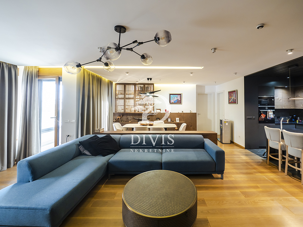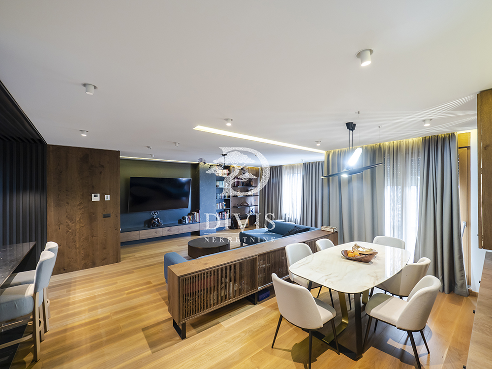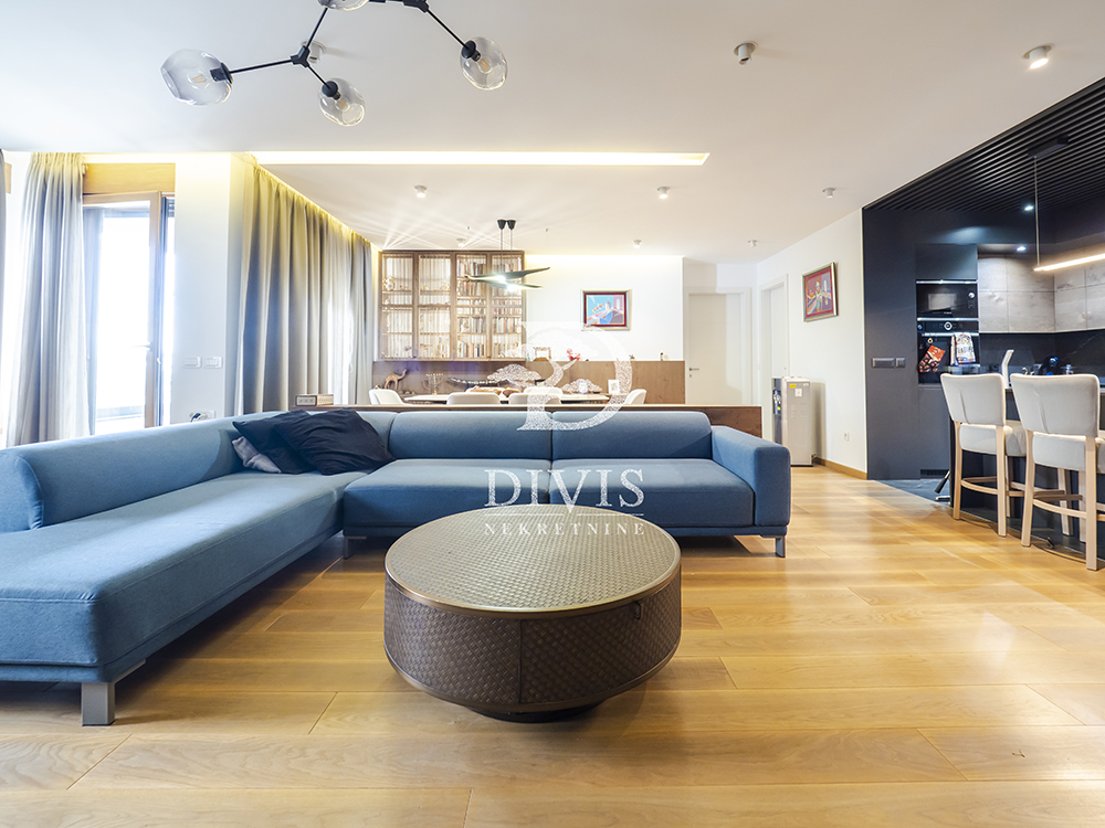 Stan se prodaje kompletno namešten, sa pažljivo odabranim dizajnerskim nameštajem i vrhunskom opremom.