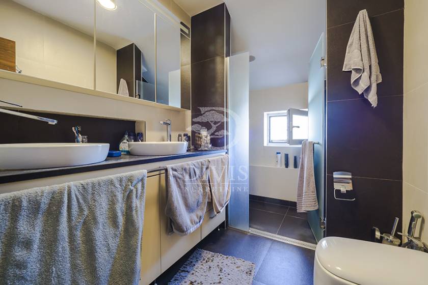 U suterenu su smešteni vešeraj, ostava, prostorija za grejanje, toalet i garaža za dva automobila sa daljinskim upravljanjem. Grejanje je etažno, kombinovano na struju i pelet, uz podno grejanje postavljeno ispod granitne keramike. Dvorište je u potpunosti ograđeno zidanom ogradom i obezbeđuje visok nivo privatnosti.