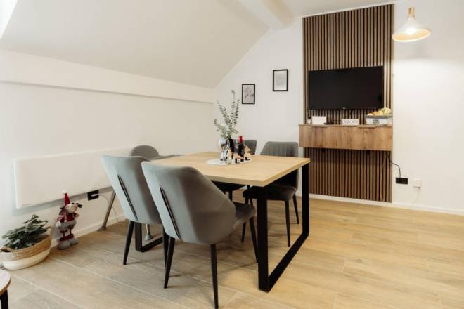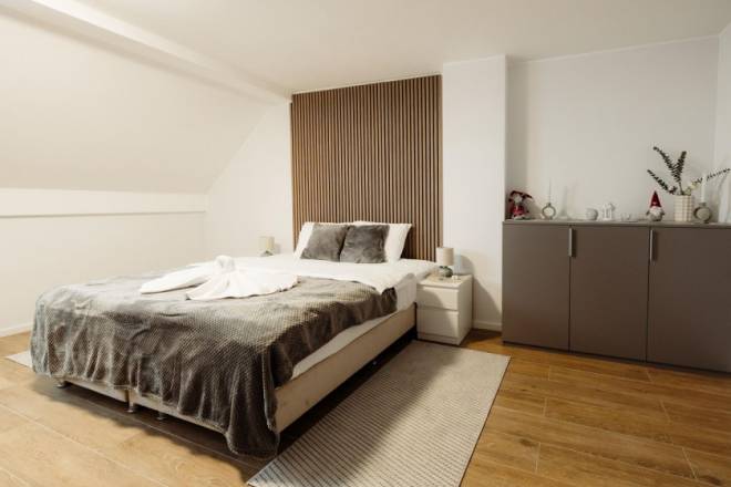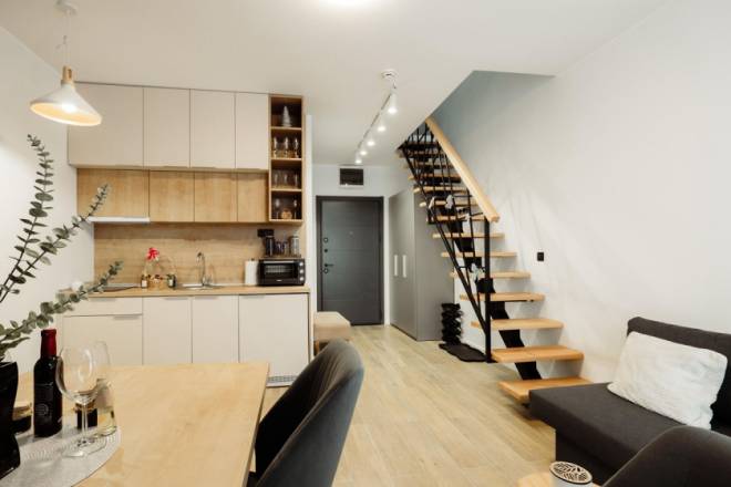 Na prodaju luksuzan dvosoban stan na Kopaoniku, smešten u mirnom vikend naselju. Stan ima 48m2 i izuzetno je funkcionalno organizovan. Spavaća soba nalazi se na galeriji, dok ostatak prostora čine moderna kuhinja sa dnevnim boravkom i kupatilo.