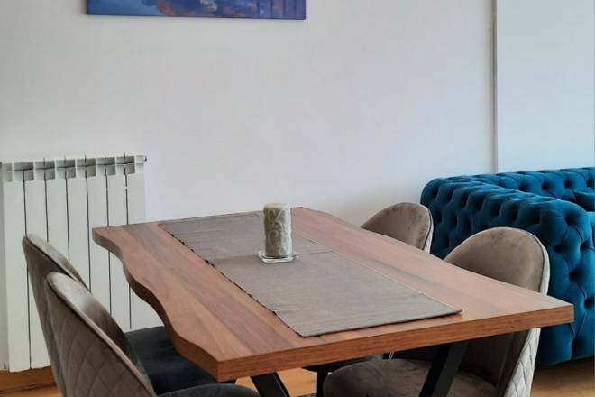Nekretnina je kompletno luksuzno nameštena, opremljena kvalitetnim i modernim nameštajem, kao i svim neophodnim tehničkim uređajima (ugradna kuhinja sa belom tehnikom, klima uređaj, veš mašina, mašina za sudove i dr.). Stan je svetao, komforan i spreman za useljenje.