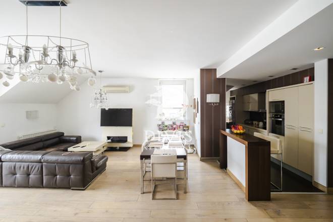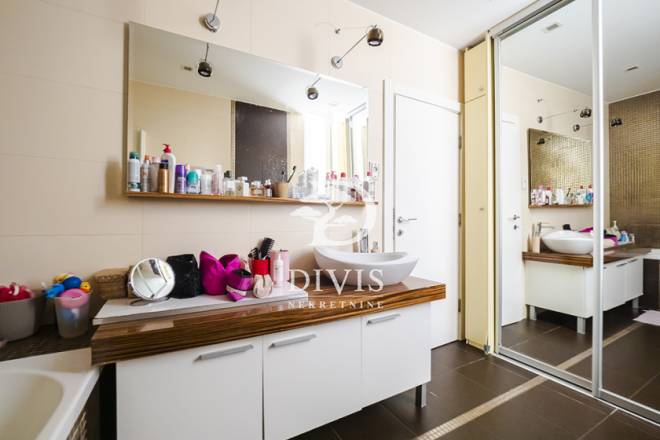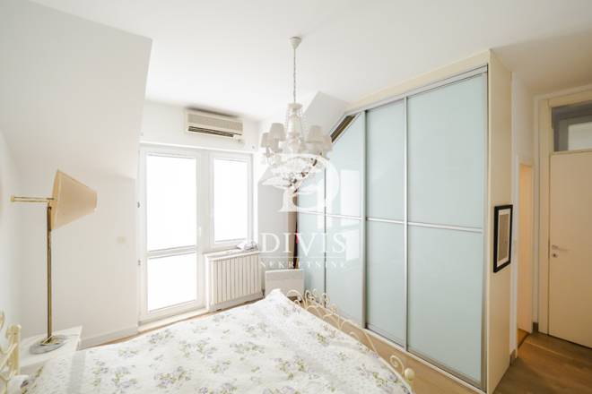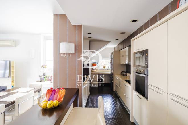 Stan se sastoji od dnevne sobe, četiri spavaće sobe, tri kupatila, kuhinje i trpezarijskog dela, tri terase koje nisu ušle u uknjiženu kvadraturu, a kojih ima u zbiru oko 30m2. Grejanje je etažno na gas. Stan je trostrano orijentisan i vrlo je svetao. Izdaje se dugoročno, kompletno je namešten.