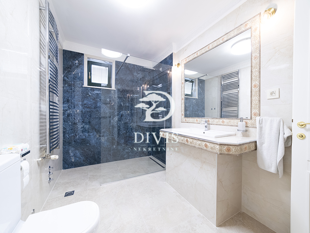 Nekretnina je u odličnom stanju, kompletno renovirana, građena početkom 2000-ih, sa sendvič zidovima, pikovanom fasadom i gasnim grejanjem. Ceo objekat je pokriven video nadzorom i alarmnim sistemom. Svetla visina plafona od skoro tri metra dodatno pojačava osećaj prostranosti, a činjenica da ste u stanu, a živite kao u kući — čini ovu ponudu posebnom.