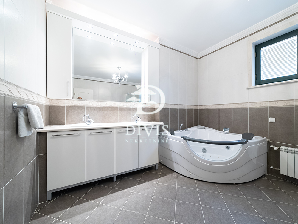 U suterenu se otvara još jedan životni prostor – veliki open space od 70m² koji se koristi kao dodatni dnevni boravak sa kuhinjom, mesto za druženja ili uživanje, sa direktnim izlazom na deo dvorišta koji pripada ovom stanu. Na istom nivou je još jedna soba, kupatilo, tehnička prostorija i garaža od 16m², koja zajedno sa dodatnim parking mestima ispred kuće i garaže čini zaokruženu celinu.
