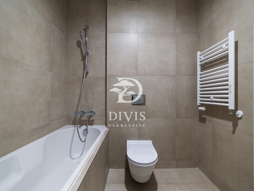 Stan raspolaže sa dva kupatila, od kojih je jedno opremljeno kadom, a drugo tuš kabinom, što ovu strukturu čini praktičnom za porodično stanovanje ili izdavanje. Grejanje je centralno, na toplanu, sa ugrađenim kalorimetrima, dok je u kupatilima dodatno izvedeno podno grejanje. Stan je opremljen klima-uređajima u svakoj prostoriji, a završna obrada je u skladu sa standardima novije gradnje.
