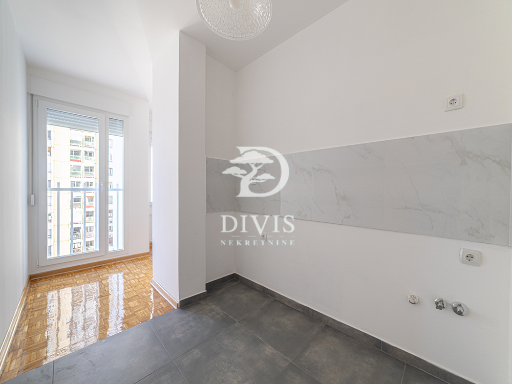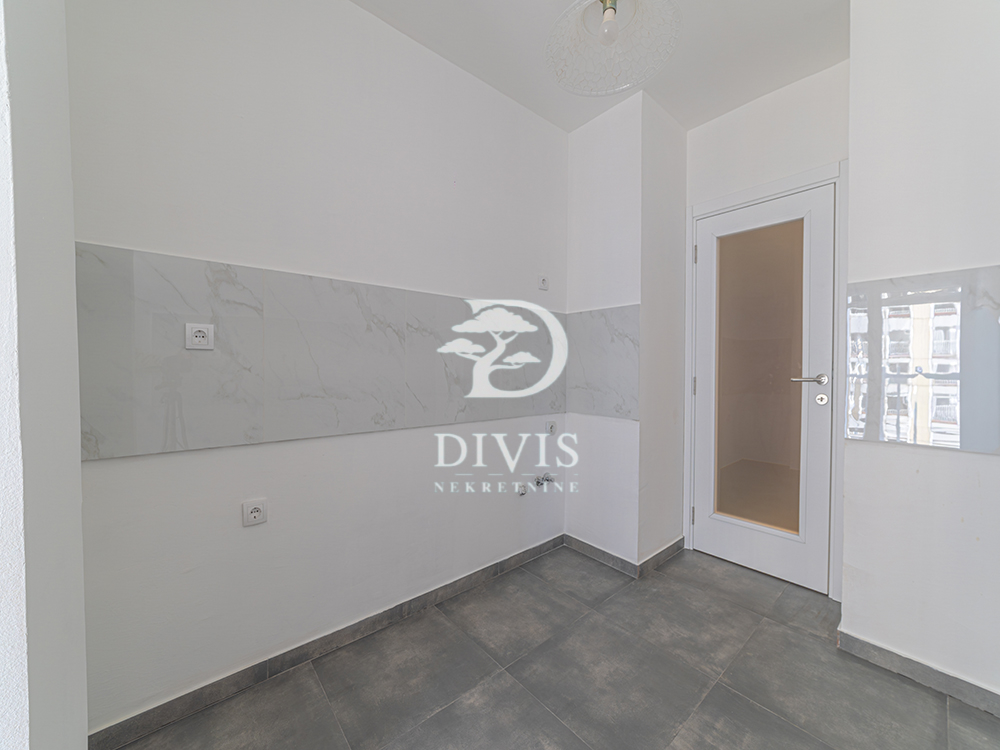 Sastoji se od ulaznog hodnika, dnevnog boravka sa trpezarijskim delom, odvojene kuhinje, spavaće sobe, kupatila i lodje. U stanu je centralno grejanje. Stan je kompletno renoviran i tom prilikom su uradjene elektro, vodovodne i kanalizacione instalacije, postavljena je nova spoljna PVC stolarija, unutrašnja drvena stolarija, sredjen je parket, nova granitna keramika, sigurnosna vrata Bosal.