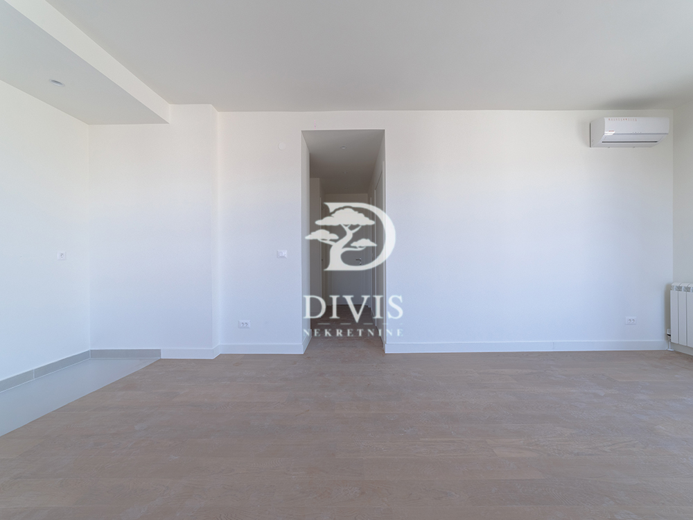 Stan je koncipiran kao open space, sa prostranim dnevnim boravkom povezanom sa kuhinjom i trpezarijom, pružajući moderan i praktičan prostor za svakodnevni život.