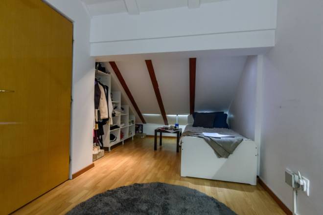 Donji nivo stana čine funkcionalno predsoblje, kuhinja sa trpezarijom, ostava, prostran i svetao dnevni boravak, kupatilo i terasa, dok se na gornjem nivou nalazi hodnik koji vodi ka tri spavaće sobe, od kojih jedna ima prostor predviđen za garderober.