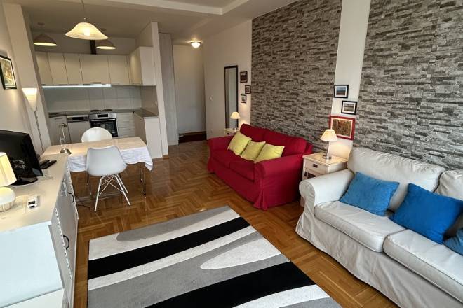 Sastoji se od ulaznog hodnika, dnevne sobe sa kuhinjom i trpezarijom, spavaće sobe, kupatila i terase sa prijatnim, otvorenim pogledom. Jugozapadna orijentacija obezbeđuje obilje prirodne svetlosti tokom celog dana. Etažno grejanje uz inverter klimu omogućava efikasno i ekonomično zagrevanje prostora. Ispred zgrade se nalazi parking namenjeno stanarima. Stan se prodaje kompletno namešten, što ga čini idealnim za porodični život, ali i kao odličnu investiciju za izdavanje.