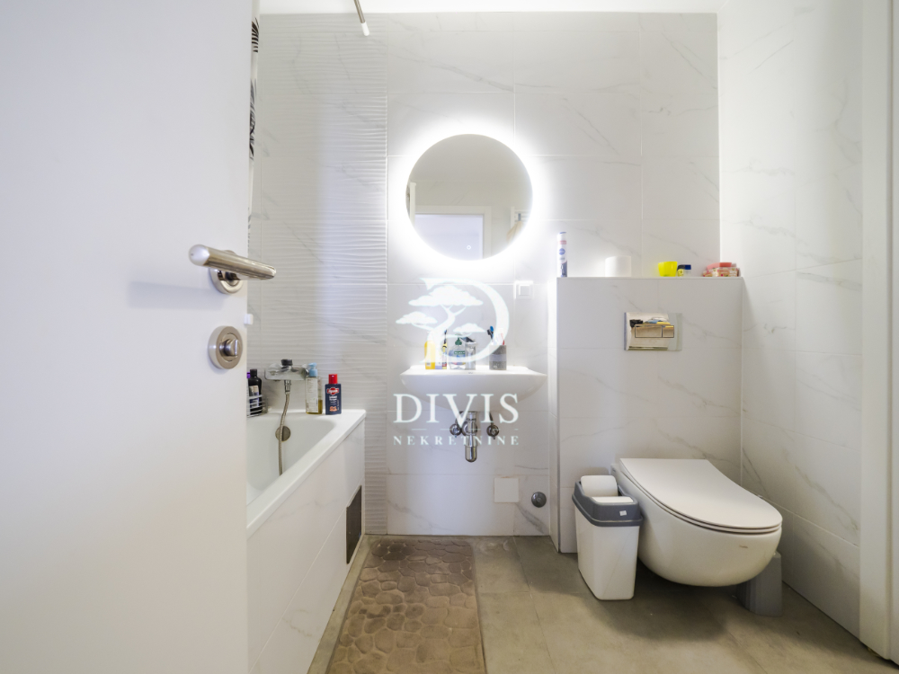 Stan ima izuzetno funckionalan raspored, izdvaja se od ostatka ponude u ovom kompleksu po stukturi i sastoji se od; prostranog open space dnevnog boravka sa kuhinjom i trpezarijom, tri spavaće sobe, prostranog kupatila za izdvojenim delom za vešeraj, dodatni toalet, hodnik i dve velike terase koje pružaju otvoren pogled i dodatni komfor. Enterijer je osmišljen za savremen način života, sa obiljem prirodnog svetla tokom celog dana.