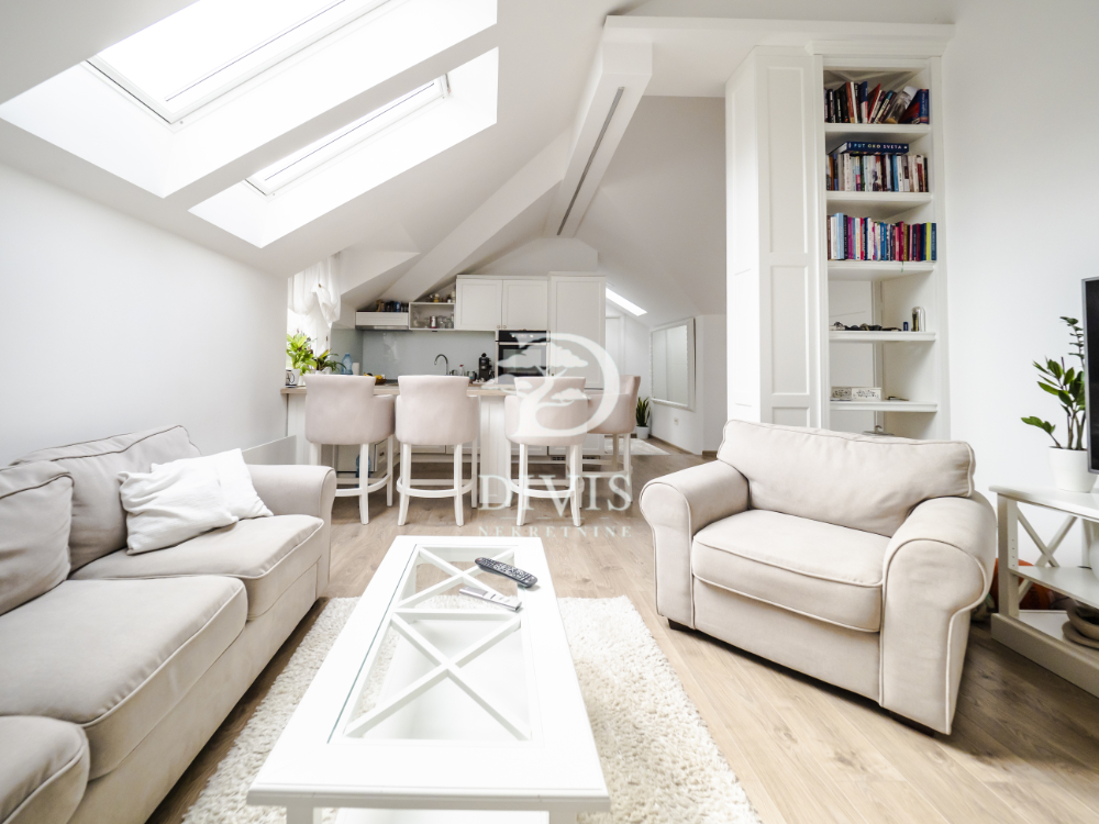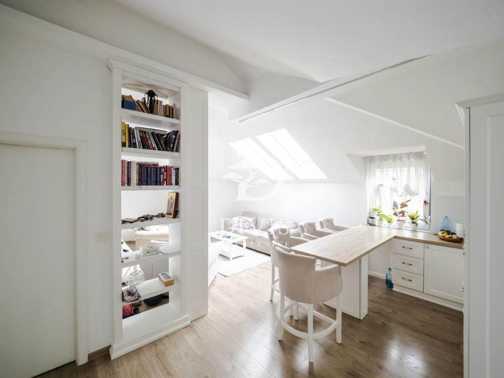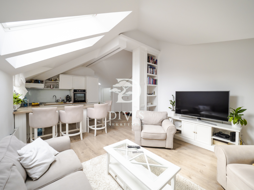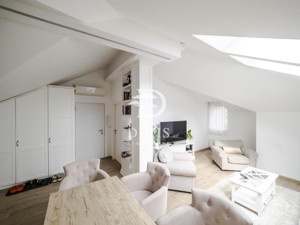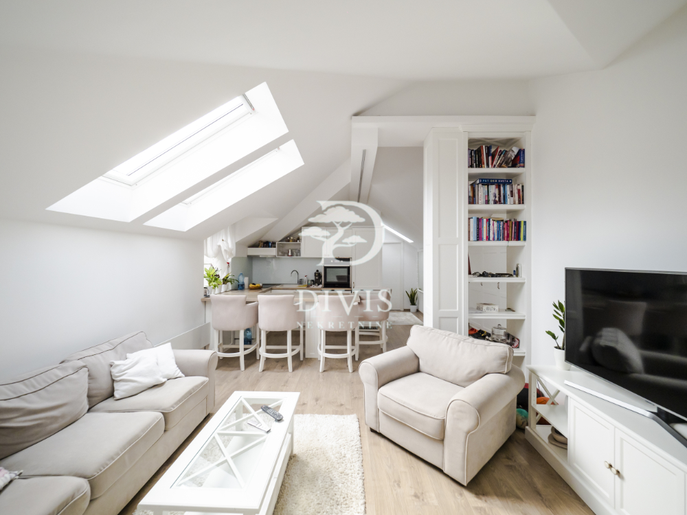 Stan se sastoji od ulaznog dela, kuhinje sa trpezarijom, dnevne sobe, kupatila i dve spavaće sobe. Stan je kompletno renoviran pre dve godine, sa potpuno novom krovnom konstrukcijom. Stan se prodaje sa ugradnom kuhinjom i svim ugradnim elementima u stanu, koji su rađeni po meri.