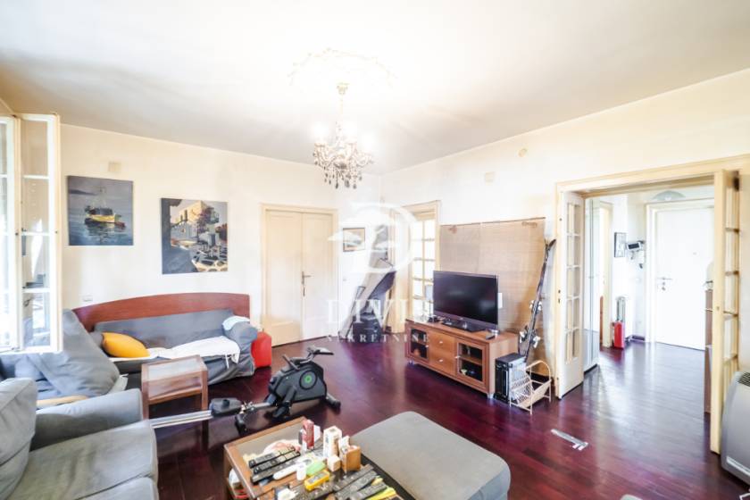 Prodajemo prostran salonski stan od 130m² u ulici Strahinjića Bana, na 4. spratu od ukupno 5, u lepoj i očuvanoj predratnoj zgradi sa liftom.