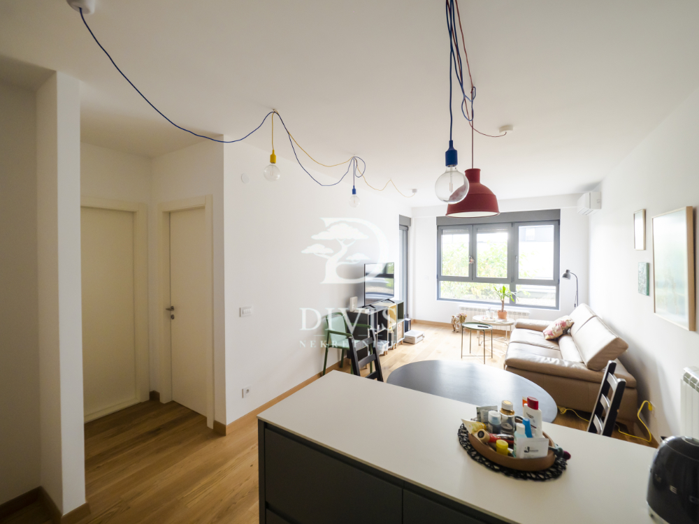 Prostor je funkcionalno organizovan, sa dnevnim boravkom i kuhinjom u otvorenom konceptu, spavaćom sobom, kupatilom i terasom na koju se izlazi iz dnevne sobe. U stanu ostaje samo ugradna kuhinja sa kompletnom belom tehnikom što je idealno za nekoga ko želi da prostor uredi po svom ukusu, bez potrebe za velikim početnim ulaganjima.