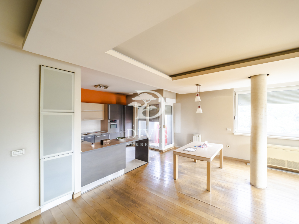 Struktura: predsoblje, hodnik, garderober, dnevni boravak sa trpezarijom i kuhinjom (REX uređaji, Forber aspirator), tri spavaće sobe od kojih je jedna master sa sopstvenim kupatilom, kupatilo, gostinski toalet, lođa i terasa. Enterijer: tarket hrastov parket, aluminijumska stolarija, dekorativna rasveta, inverter klime, centralno grejanje. Stan poseduje pravo korišćenja garažnog mesta. Lokacija je idealna – u blizini škola, vrtića, prodavnica, Doma zdravlja i javnog prevoza.