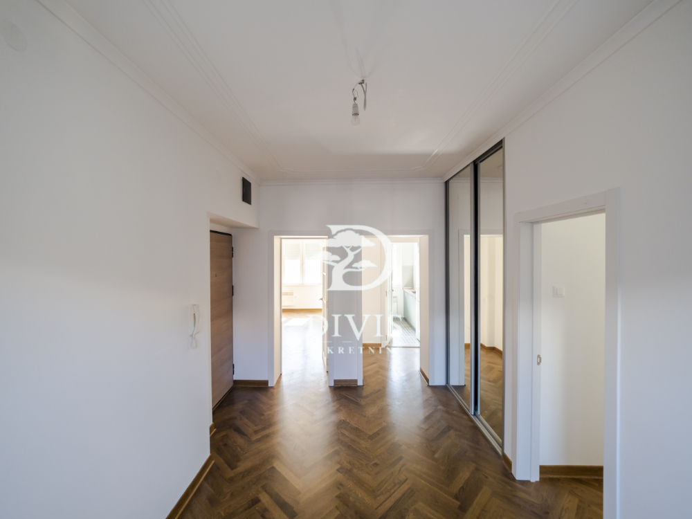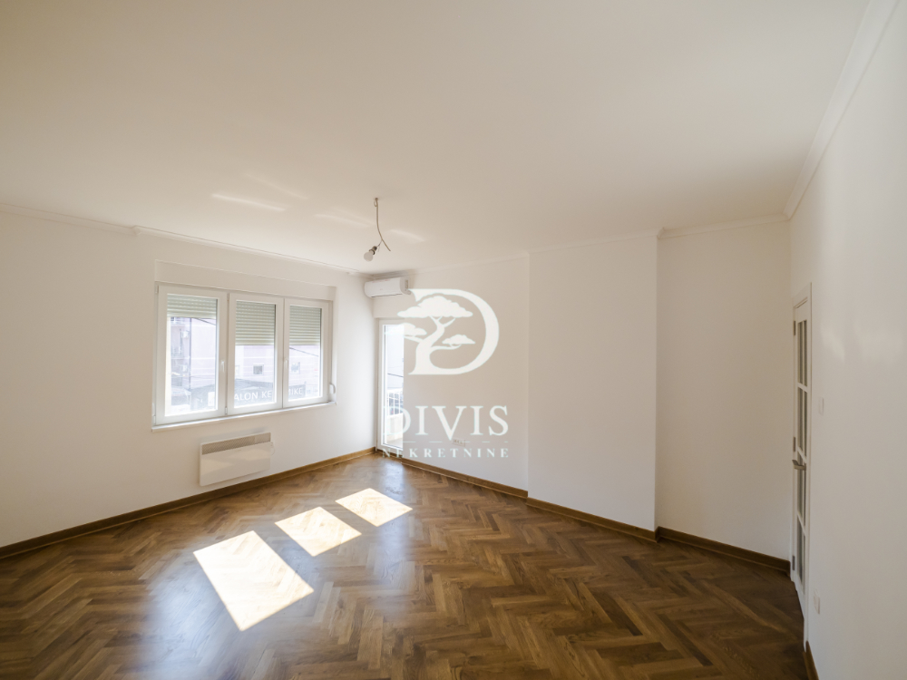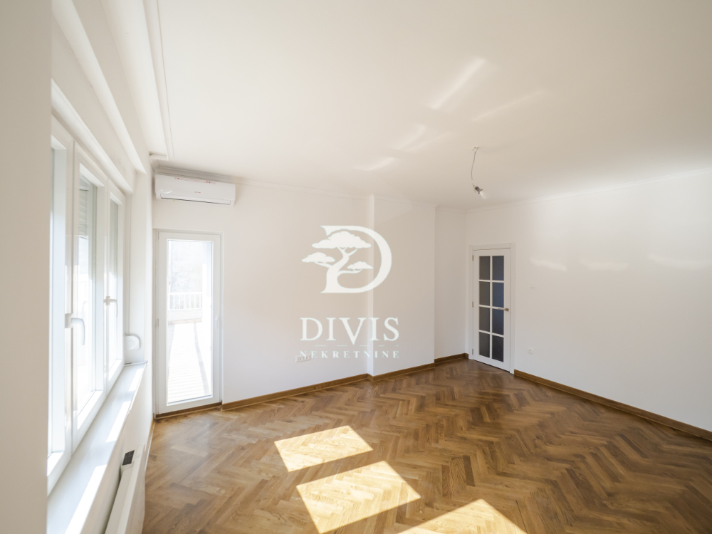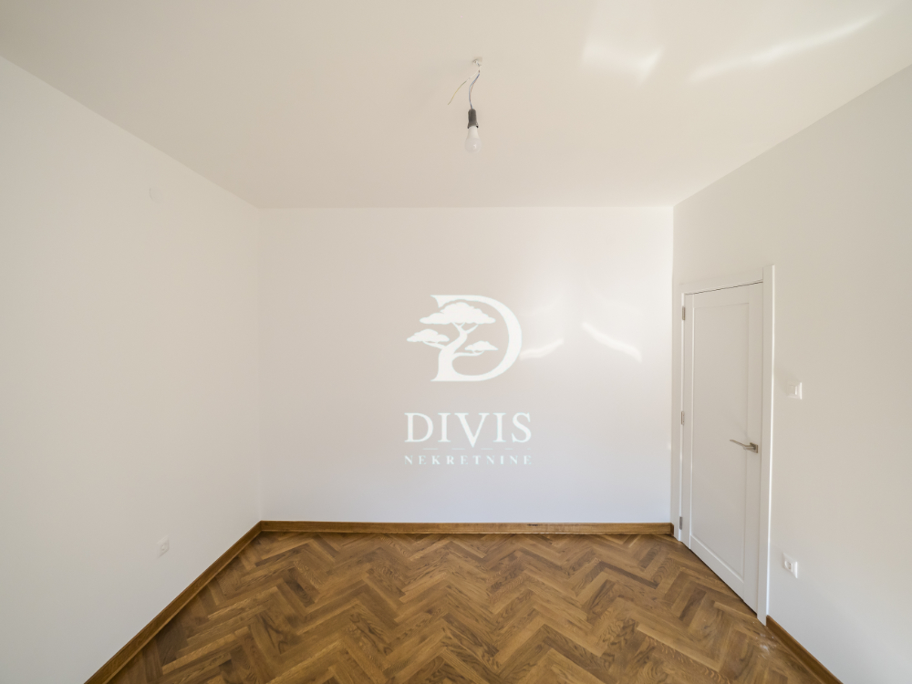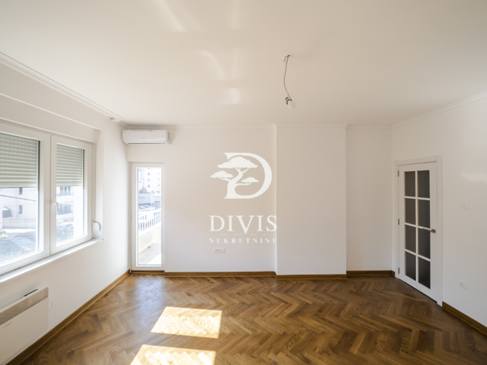 Stan se sastoji od dnevnog boravka, kuhinje, trpezarije, dve spavaće sobe, kupatila sa degažmanom i dve terase koje pružaju dodatni komfor i prostor za uživanje. U potpunosti je renoviran, spreman za useljenje bez dodatnih ulaganja. Kuhinja je rađena po meri i prodaje se kompletno opremljena. Postavljena je spoljna PVC stolarija, unutrašnja vrata MDF ploče, ulazna vrata su sigurnosna, što pruža dodatnu sigurnost, hrastov parket prve klase, dok je keramika (kuhinja, kupatilo, terase) uvozna vrhunskog kvaliteta. Grejanje preko BOSCH konvektorskih radijatora, sa podešavanjem putem tajmera i termostata.