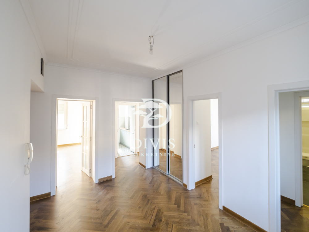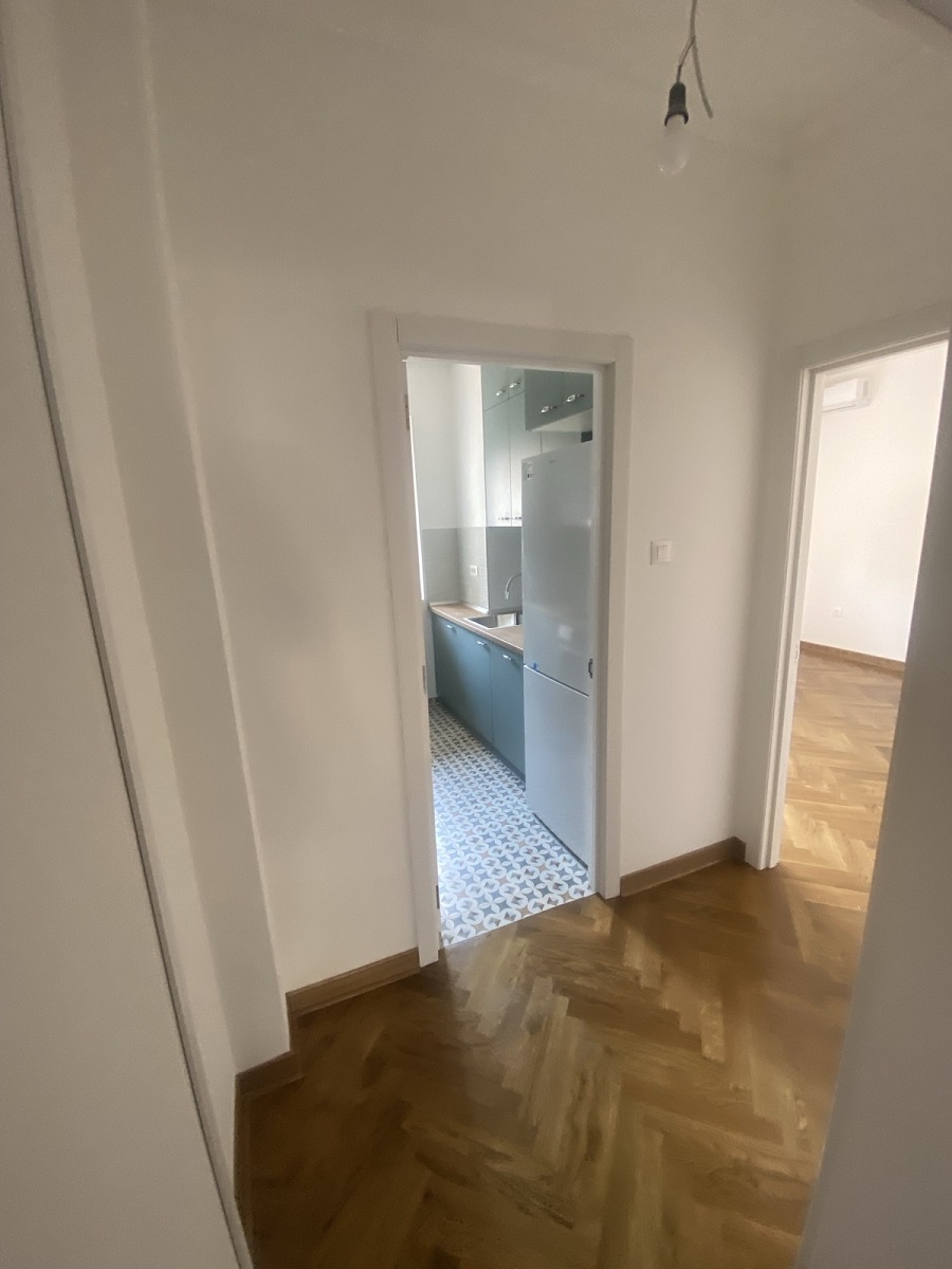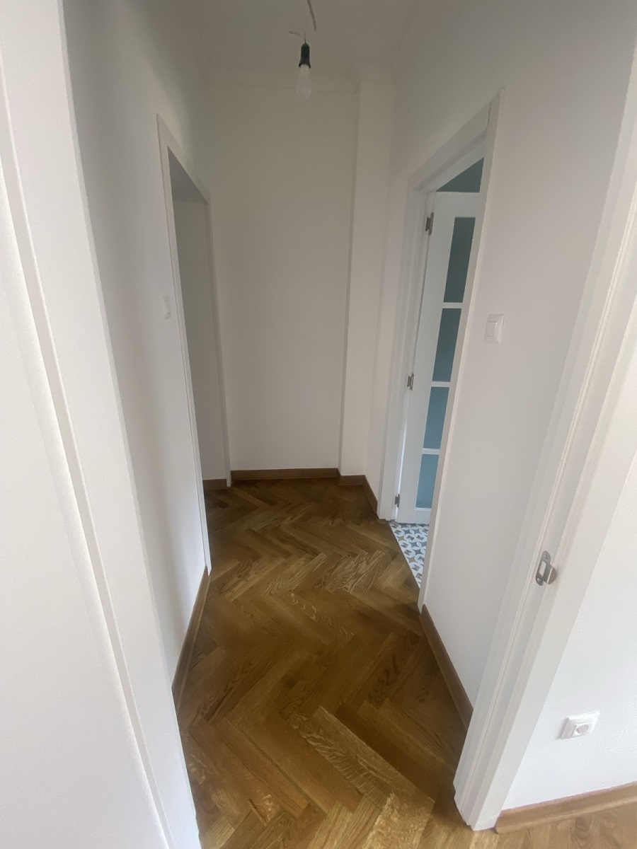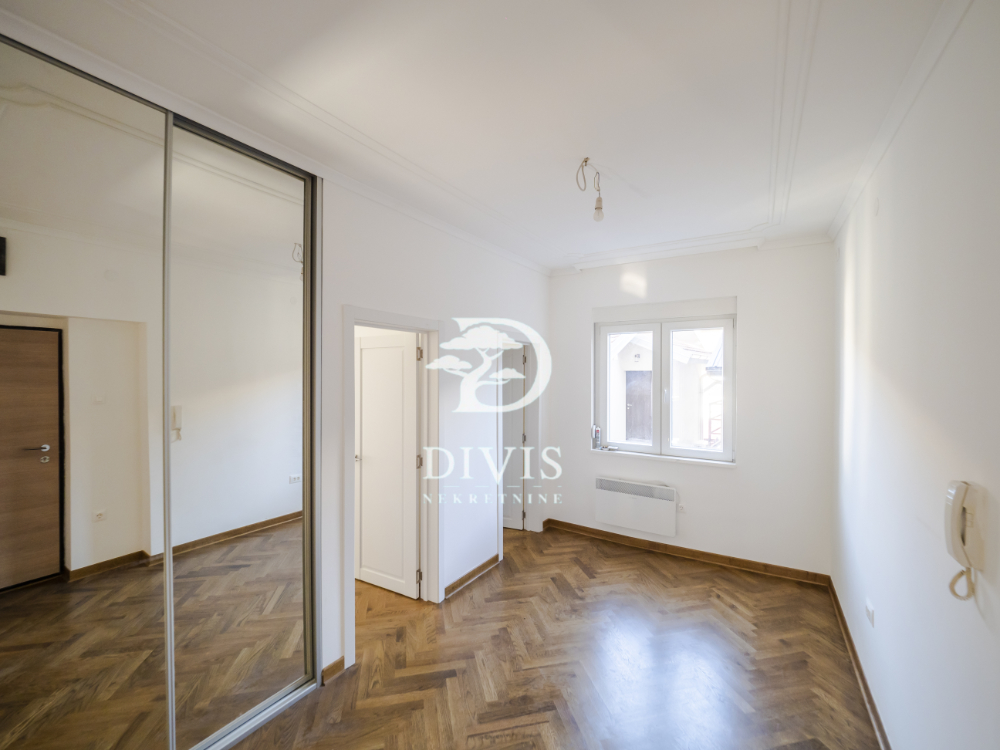 Stan se sastoji od dnevnog boravka, kuhinje, trpezarije, dve spavaće sobe, kupatila sa degažmanom i dve terase koje pružaju dodatni komfor i prostor za uživanje. U potpunosti je renoviran, spreman za useljenje bez dodatnih ulaganja. Kuhinja je rađena po meri i prodaje se kompletno opremljena. Postavljena je spoljna PVC stolarija, unutrašnja vrata MDF ploče, ulazna vrata su sigurnosna, što pruža dodatnu sigurnost, hrastov parket prve klase, dok je keramika (kuhinja, kupatilo, terase) uvozna vrhunskog kvaliteta. Grejanje preko BOSCH konvektorskih radijatora, sa podešavanjem putem tajmera i termostata.