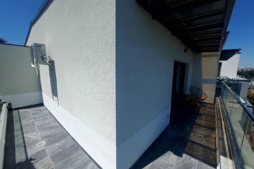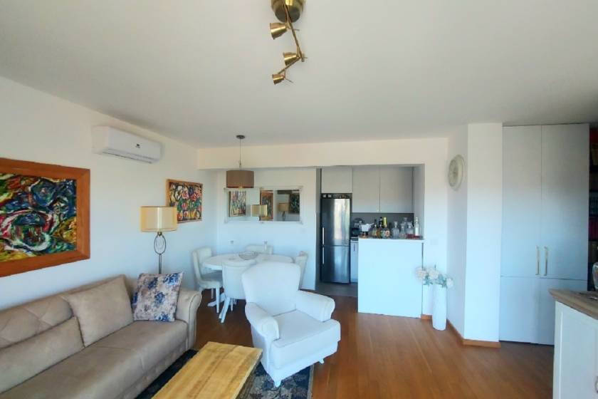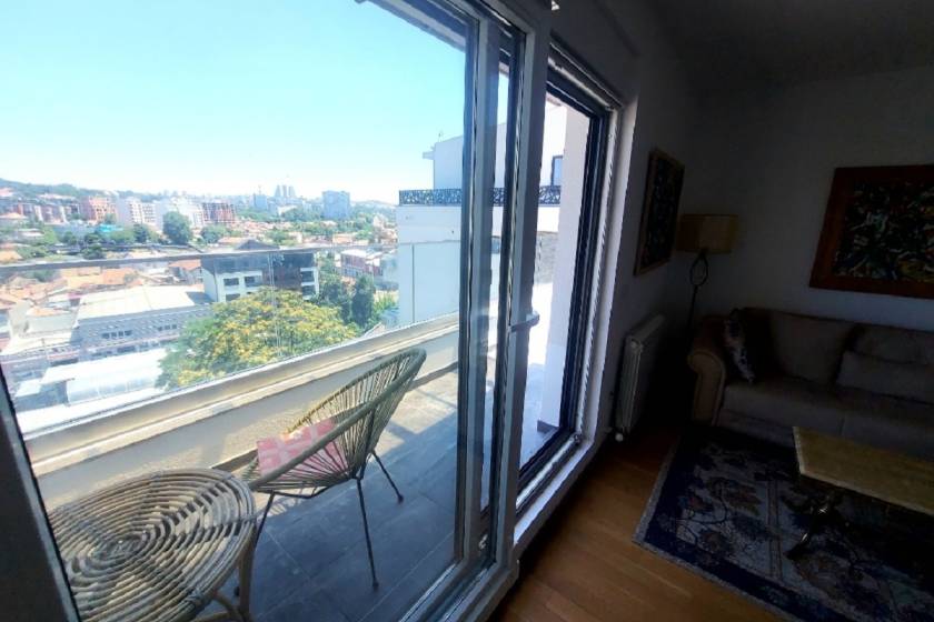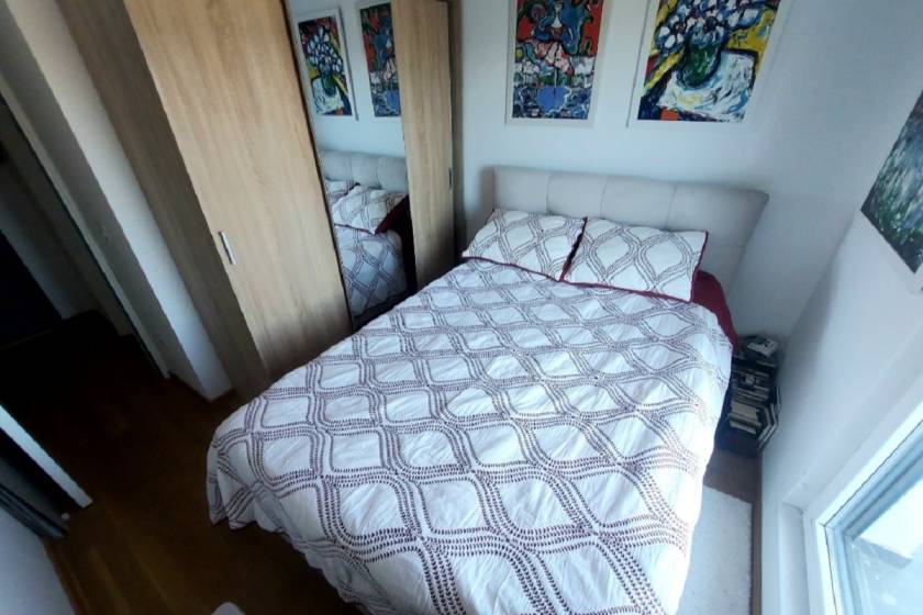 Stan se sastoji od prostrane dnevne sobe sa kuhinjom i trpezarijom, dve komforne spavaće sobe, hodnika, kupatila i velike terase koja se prostire duž celog stana i pruža otvoren, fantastičan pogled na panoramu Beograda. Zgrada je građena kvalitetnim materijalima renomiranih proizvođača i poseduje video-nadzor. Lokacija je izuzetno praktična-u neposrednoj blizini nalaze se svi infrastrukturni sadržaji neophodni za udoban i kvalitetan život, kao i stanice više linija gradskog prevoza.