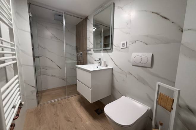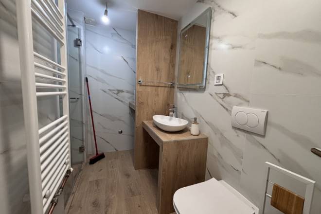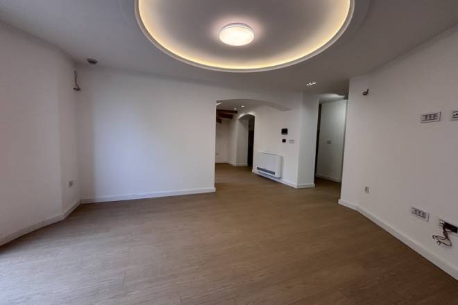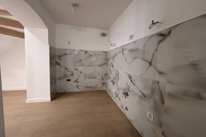 Donja etaža, površine oko 50 m², obuhvata moderno opremljenu kuhinju, veći otvoreni deo koji može služiti kao kancelarijski prostor ili zona za odmor, kupatilo i malu terasu. Zahvaljujući visini plafona od preko 4 metra, formirana je i gornja etaža iste kvadrature, na kojoj se nalaze tri odvojene prostorije, dodatno kupatilo i terasa u svetlarniku. Kroz čitav prostor sprovedena je mrežna infrastruktura, postavljen je kompletan video-nadzor, video-interfon, alarmna centrala sa Jablatron senzorima, kao i požarna centrala i senzori za detekciju eventualnog curenja vode. Ugrađena je i toplotna pumpa za grejanje, hlađenje i pripremu tople vode, što obezbeđuje minimalne mesečne troškove. Optika i REK orman su uvedeni (ugovor nije sklopljen). Sve u prostoru je potpuno novo nakon renoviranja i do sada nekorišćeno.