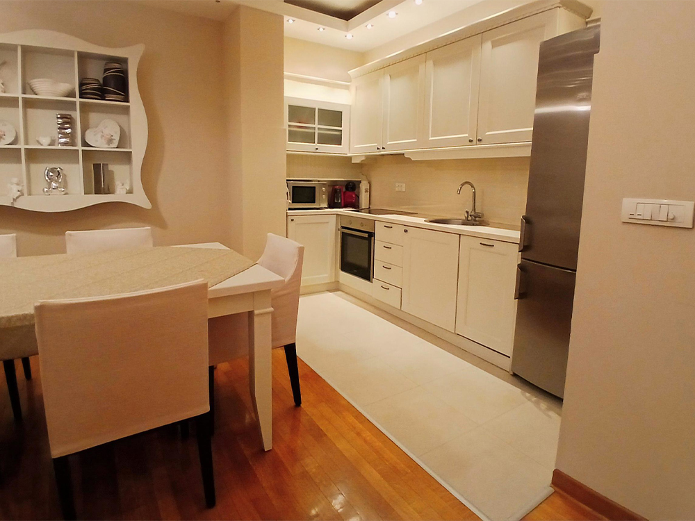 U strogom centru Beograda, izdaje se elegantan i moderno opremljen trosoban stan površine 100 m². Stan je smešten na četvrtom spratu uredne i kvalitetno građene zgrade sa liftom, koja poseduje recepciju sa portirom, što dodatno doprinosi osećaju sigurnosti i komfora stanovanja u samom srcu grada.
