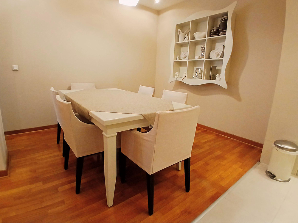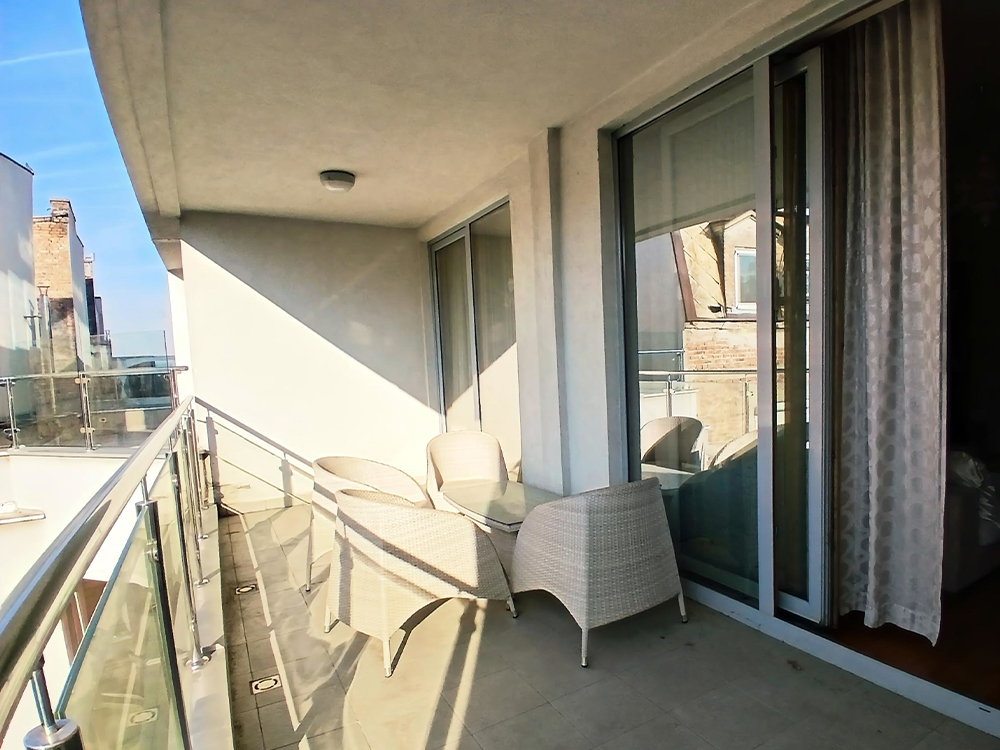 Stan je veoma svetao, funkcionalnog rasporeda i pažljivo uređen. Centralni deo prostora čini prostrana dnevna zona u kojoj su dnevna soba, trpezarija i kuhinja skladno povezane u jedinstven open-space ambijent, stvarajući prijatan prostor za svakodnevni život i boravak pri kom se nalazi i dodatni gostinski toalet. Iz ovog dela stana izlazi se na veliku, lepu terasu okrenutu ka unutrašnjem dvorištu zgrade, što prostoru daje dodatni mir i privatnost, retkost za centralnu gradsku zonu.
