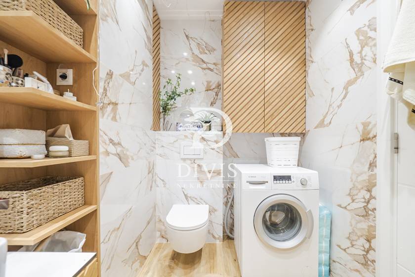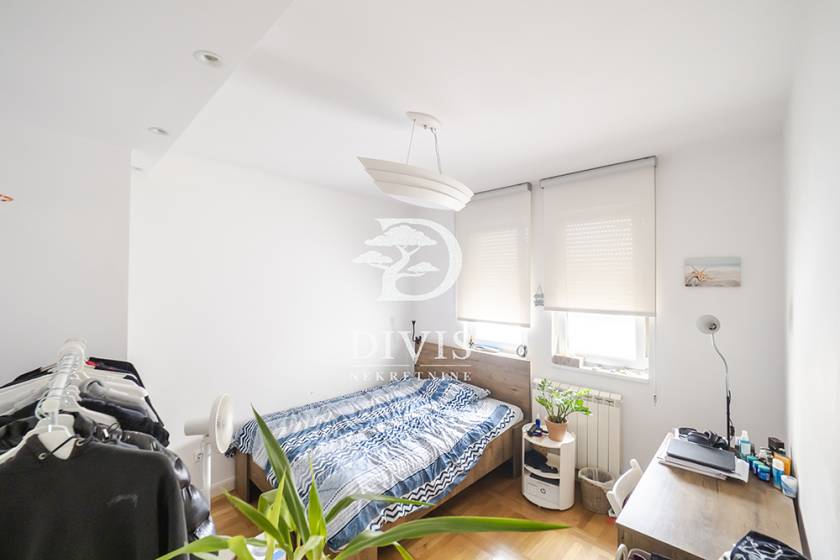 Stan se nalazi na trećem spratu, sastoji se iz ulaznog dela, dnevnog boravka koji je osvetljen tokom celog dana i izlazi na veliku terasu od 16m2, kuhinje sa svim uredjajima, dve spavaće sobe i većeg kupatila. Poseduje pripadajući podrum od 10 m2.