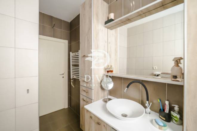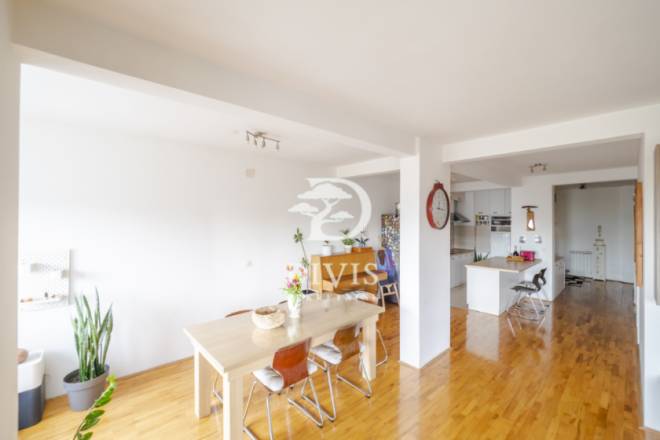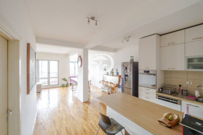 Stan se sastoji od ulaznog hodnika, kuhijnje, trpezarije, dnevnog boravka, dve spavaće sobe, terase sa koje se pruža otvoren pogled, kupatila i toaleta. Stan je izuzetno osvetljen tokom celog dana, orijentisan je jugozapadno. Vrlo lako je adaptibilan u troiposoban stan. Grejanje je etažno, poseduje i inverter klima uređaj. Prodaje se polunamešten.