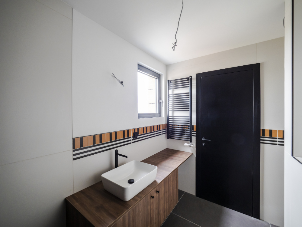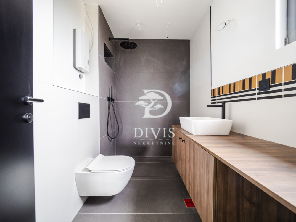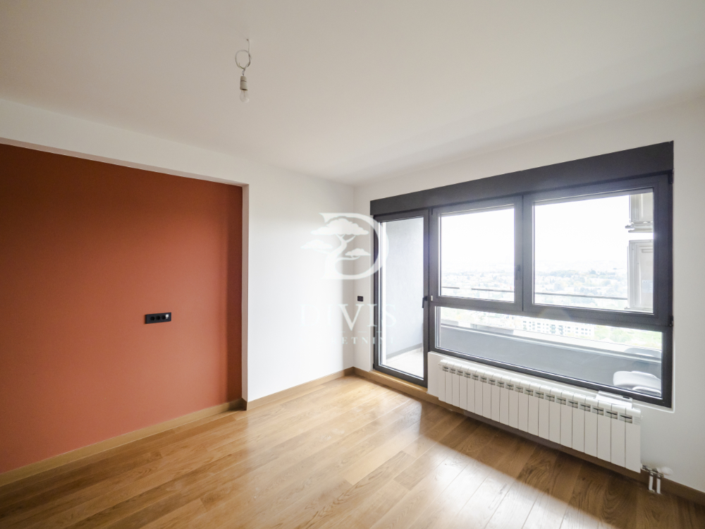 Ono što ovaj stan izdvaja u odnosu na standardnu ponudu u kompleksu jeste činjenica da je tokom gradnje značajno unapređen-postavljen je kvalitetniji parket, keramika i sanitarije su podignute za klasu ili dve u odnosu na investitorski standard, a unutrašnja stolarija je pažljivo birana da nadmaši ono što je prvobitno bilo predviđeno. Stan je prazan, potpuno završen i odmah useljiv.